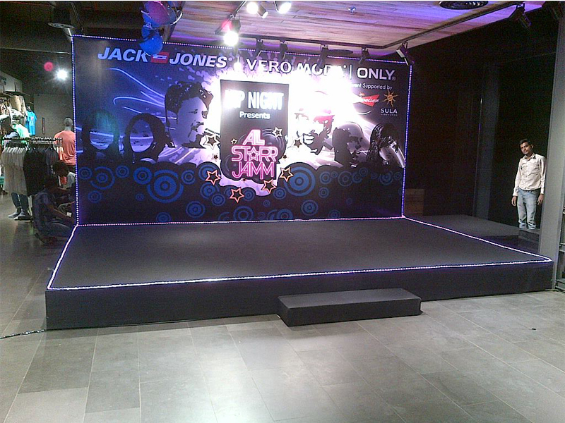 - Event stage-setup, Conferences, Exhibitions Stall ,Green Rooms, designing/execution, award Shows/ concert shows, Designer DJ console, Flex - Vinyl Branding etc.
